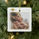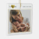 A soft modern keepsake for new parents, this white and gold tree ornament features a simple gold heart behind the baby’s name, a clean serif font for the text, and a large photo template photo, that you can replace with your own favorite image of mom and newborn; add your baby’s name and date of birth to create a personalized heirloom that looks beautiful on the Christmas tree year after year and makes a sweet gift for grandparents and family.