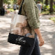 Mom Established Black Elegant Script Photo Tote Bag