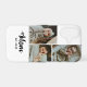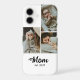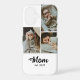 Custom Mom Established Modern Bold Script White 3 Photo iPhone Case with Black Text on a White Background. Replace the photos with your own and change the years to the year(s) you became a mom. You can change "mom" to mum or mama if needed (leave the little square in place).