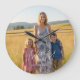 Mom Established Modern White Script Photo Round Clock