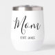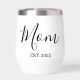 Black and white "Mom Established" New Mom Gift. Minimal elegant script "Mom" wine tumbler. Add your custom "established" year when your first child was born or will be born or perhaps there are more. Perfect gift for the new mom in your life. You can also make this for several children. Just add their birth years with a comma or the word "and".