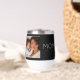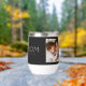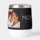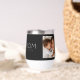 Mom Established Typography Black Photo Design - Give Mom the recognition she deserves with this fun black and white photo wine tumbler. The word "MOM" appears in classic white typography on a black background, with the words "EST." ("Established") and the year below. Easily replace the sample photo with your favorite mom and baby photo. Edit the text to display one or more birth dates. Other short variants of "mom," such as "mum" or "mama," can be substituted. Makes a great gift for Mother's Day or Mom's birthday!