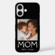 Mom Established Typography Photo Black Design - Give Mom the recognition she deserves with this fun black and white iPhone case. The word "MOM" appears in classic white typography on a black background, with the words "EST." ("Established") and the year below. Easily replace the sample photo with your favorite mom and baby photo. Edit the text to display one or more birth dates. Other short variants of "mom," such as "mum" or "mama," can be substituted. Makes a great gift for Mother's Day or Mom's birthday!
