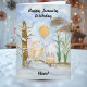 Soft and serene, this hand-painted watercolor captures a Snowy Owl resting on a winter branch beside a layered vanilla birthday cake topped with gentle purple frosting and glowing candles. Ivy-covered trees in the background add a quiet January charm, making this a sweet and thoughtful birthday scene created especially for a mom who loves birds, nature, and peaceful winter moments.