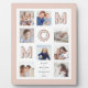 Send a beautiful personalised gift to your mother (MOM) that she'll cherish forever. Special personalised family photo collage plaque to display your own special family photos and memories. Our design features a simple 8 photo collage grid design with "MOM" letters displayed in the grid design. Each photo is framed with a simple offset gold coloured border. A thick blush pink border frames the plaque. Customise with family names. (note: "MOM" letter colour can be changed in suit your preference)