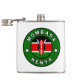 The flask itself is fine. It’s a cheap flask, obviously bought in bulk, however am prepared to overlook that. Given that it is a personalized item, I would have liked to have seen gift boxing instead of the generic packaging. Terrible printing, and/or quality. It’s a cheap, tacky vinyl. It is not cut straight and is also applied in a way that it is overhanging the bottom, causing the glue to catch on items and it will eventually roll and tear, damaging the wrap.