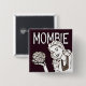 Classic 50s mum wearing an apron and happily serving up... Brains? Well that gives new meaning to being a "June Cleaver" mum! Text: MOMBIE Image: Retro zombie housewife serving up brains for dinner.