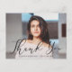 Simple, stylish graduation thank you postcard featuring the graduate's horizontal photo with "Thank You" in an elegant black script overlay. Personalise the front of the graduation thank you postcard by adding the graduate's name and graduation year. The postcard reverses to display your return address and optional message. The photo thank you postcard is perfect for both high school and college graduates.