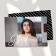 Announce your graduate's special achievement with our Momentous Script graduation announcements. The stylish graduation announcements feature a modern calligraphy script font overlaying the graduate's favourite senior photo. Personalise the modern graduation announcements with the graduate's name, school name, and graduation year. The reverse side of the announcement features a hand-drawn diagonal striped background in black.