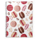 Imagine a delightful notebook with a vibrant illustration of macarons.Each macaron is detailed with light shadows and reflections, giving it a three-dimensional appearance.