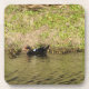 A photograph of a mother Muscovy duck swimming in a pond with her cute Muscovy ducklings on a cork coaster
