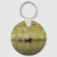 A photograph of a mother Muscovy duck swimming in a pond with her cute Muscovy ducklings on a key chain