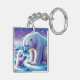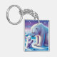 Pretty in blue and white, a polar bear with her cub is having a special moment on the ice. Acrylic Keychain.