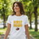 Celebrate mommy's incredible journey through the first year with this fun and spirited "Mommy's First Year Down" t-shirt design. Featuring bold, yellow text that reads "First Year Down" above a classic American football, this graphic tee captures the exciting and sometimes challenging, yet always rewarding, adventure of new motherhood. The back of the shirt simply states "MOMMY" in matching yellow text, creating a playful and proud statement. It's the perfect way for any new mom to commemorate this special milestone and show off her new role with a touch of sporty flair.