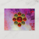 Elegant ,vibrant,colourful 3D gemstone symbol inspired from Japanese mon of Samurai sensei Miyamoto Musashi ( Bushido). Bright colours,geometrical circles,rounds,red purple magic swirls ,flourishes ,leaves and gold sparkles.Watercolor painting, and golden foil. 3D gem stones by BALDESIGN3D (c),Cool and artistic card for all purpose.