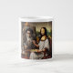 This unique mug is a playful twist on the famous painting, showing Mona Lisa holding a palette and brush, actively painting da Vinci's portrait on an easel.