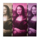 Da Vinci's masterpiece times three (x3), set off in colours of chocolate brown, raspberry, and plum purple... with thin vertical streamers of animal print.