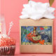 This is just a little bit of fun with the Mona Lisa - we've been very creative. The beautiful Mona Lisa has been dressed in an old fashioned red dress and sent to the beach to find a really big crab, a Cancer Zodiac collage! All ready to dance with her crab!