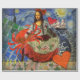 This is just a little bit of fun with the Mona Lisa - we've been very creative. The beautiful Mona Lisa has been dressed in an old fashioned red dress and sent to the beach to find a really big crab, a Cancer Zodiac collage! All ready to dance with her crab!