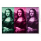 Da Vinci's masterpiece times three (x3), set off in colours of green, raspberry, and plum purple.