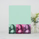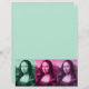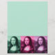 Da Vinci's masterpiece times three (x3), set off in colours of green, raspberry, and plum purple.