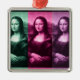 Da Vinci's masterpiece times three (x3), set off in colours of green, raspberry, and plum purple.