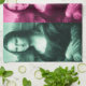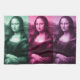 Da Vinci's masterpiece times three (x3), set off in colours of green, raspberry, and plum purple.
