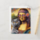 Mona Lisa Hippie Smoking Grey Cat Postcard