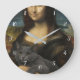 Mona Lisa Holding Elegant Grey Cat Large Clock