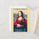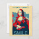 Mona Lisa the woman famous for her mysterious smile, from Leonardo DaVinci's painting, in a modern graphic poster style with the word SMILE makes a great art themed postcard.