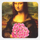 Mona Lisa With Bouquet Of Pink Roses Square Sticker