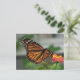 Photograph of a beautiful Monarch Butterfly flitting to a Lantana flower.