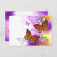Orange, detailed monarch butterflies on light, purple, picturesque, painted background.