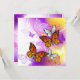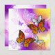 Orange, detailed monarch butterflies on light, purple, picturesque, painted background.