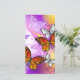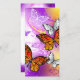 Orange, detailed monarch butterflies on light, purple, picturesque, painted background.