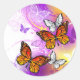 Monarch Butterflies on Purple Background Classic Round Sticker