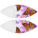 Orange, detailed monarch butterflies on light, purple, picturesque, painted background.