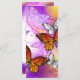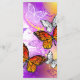 Orange, detailed monarch butterflies on light, purple, picturesque, painted background.
