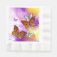 Orange, detailed monarch butterflies on light, purple, picturesque, painted background.