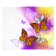 Orange, detailed monarch butterflies on light, purple, picturesque, painted background.