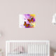 Orange, detailed monarch butterflies on light, purple, picturesque, painted background.