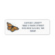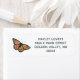 A return address label featuring a brilliant orange golden Monarch butterfly.