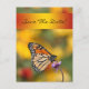 A close up photograph of a monarch butterfly resting on a purple flower is the centerpiece of this gorgeous card, and the background, in yellows and reds, really makes this card stand out among the others. We've added a text banner in your choice of purple or gold, so you can say what you want in any font, in any colour. Play around with this one. Resize the image, work with the background colours, and make it all your own. Perfect for wedding announcements, bridal shower invitations, garden parties, and more.