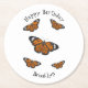 Monarch butterfly cartoon illustration round paper coaster