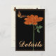 A lush black enclosure card to complement your wedding stationary whether it is Boho, rustic chic or modern. The elegant black enclosure is embellished by a single perfect burnt orange Dahlia and monarch butterfly plus a gold border. The reverse has templates for accomodations, events and your wedding website. Another enchanting piece for your wedding stationary.