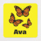 Monarch Butterfly Design - Personalise Name Small Square Bright Yellow Clothing Label (0.75" x 0.75")