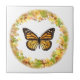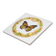 Monarch butterfly in frame of leaves ceramic tile