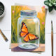 Monarch Butterfly Jar Watercolor Painting Postcard