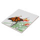 Pretty photograph of a monarch butterfly feeding on milkweed blooms. Delicate design on white ceramic tile.