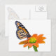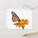 An image of a monarch butterfly feeding at a bright orange tithonia flower is featured on this colourful postcard.